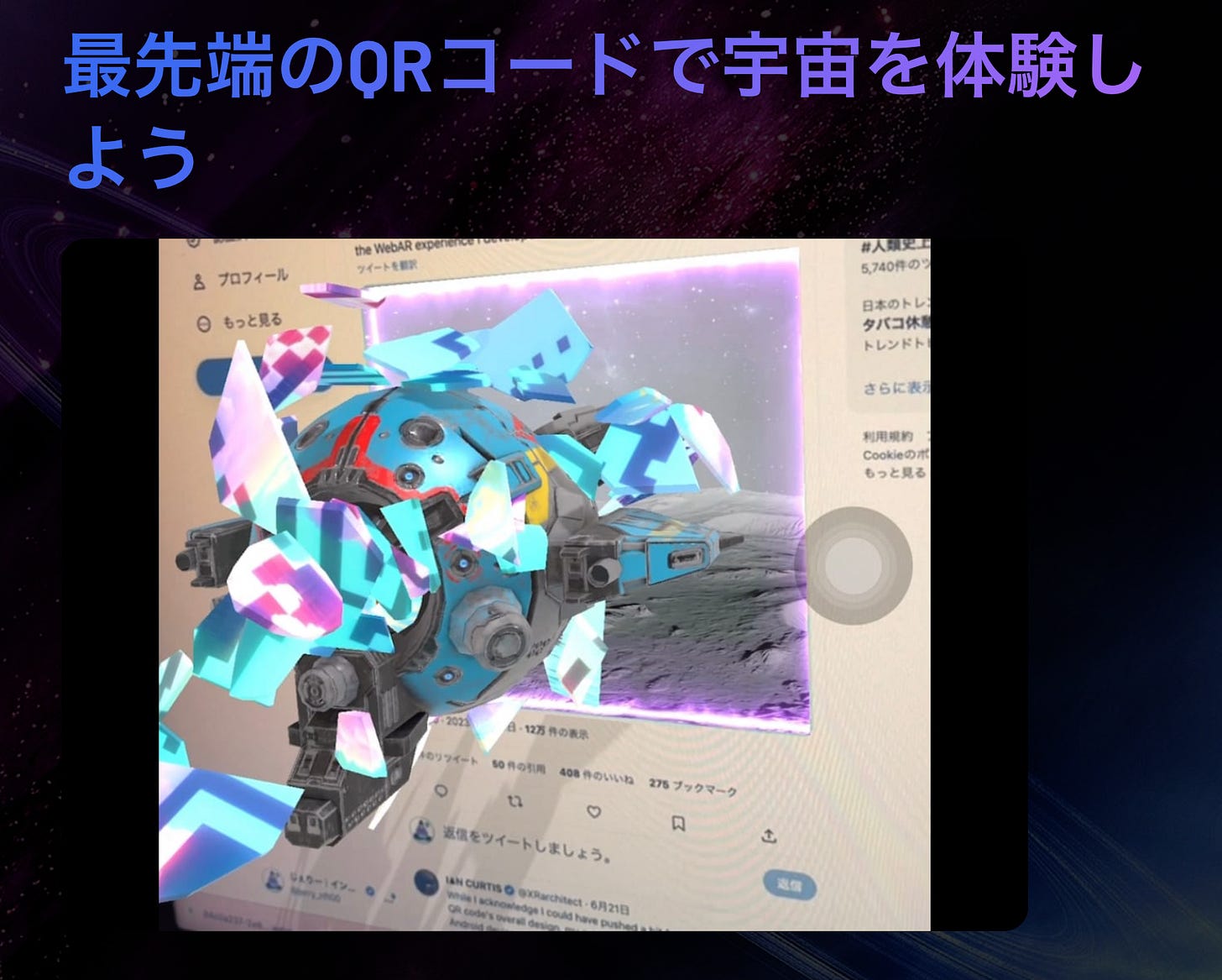 スキャンすると宇宙船が飛び出し、月に行けるQRコードとして驚きの体験ができる。