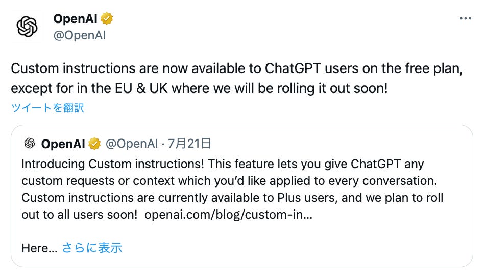 1️⃣ChatGPTの新機能: 『Custom instructions』が無料ユーザーにも解放!